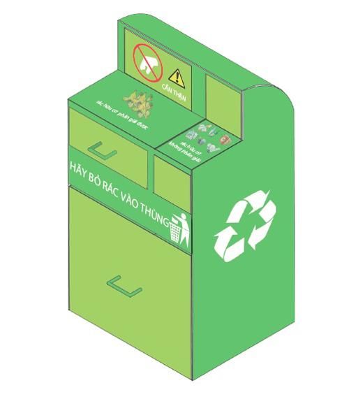 Thùng xử lý rác sơ bộ tại gia là một loại thùng rác đa chức năng, giúp giải quyết nhiều vấn đề của rác mà thùng rác bình thường không giải quyết được. Tại 2 ngăn nhận rác sẽ ghi thông tin, hình ảnh hướng dẫn người dân hiểu được loại rác nào phân hủy được và không phân hủy được để đưa vào đúng khoang chứa.