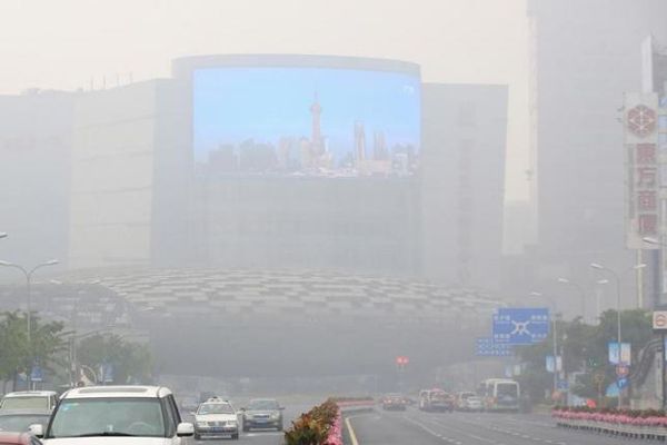 Một màn hình điện tử cho thấy khu vực tài chính Phố Đông Thượng Hải trong một ngày đẹp trời, trong tình trạng thời tiết sương khói nặng ở Thượng Hải, Trung Quốc ngày 26/5/2016. Ảnh: REUTERS / ALY SONG / FILES