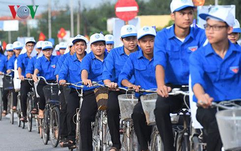 200 thanh niên đạp xe hưởng ứng Tuần lễ biển đảo (Ảnh: VOV)