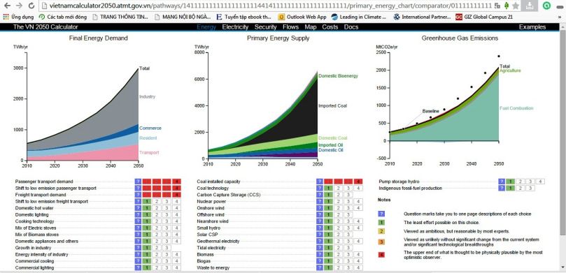 Minh họa mô hình Vietnam 2050 Calculator